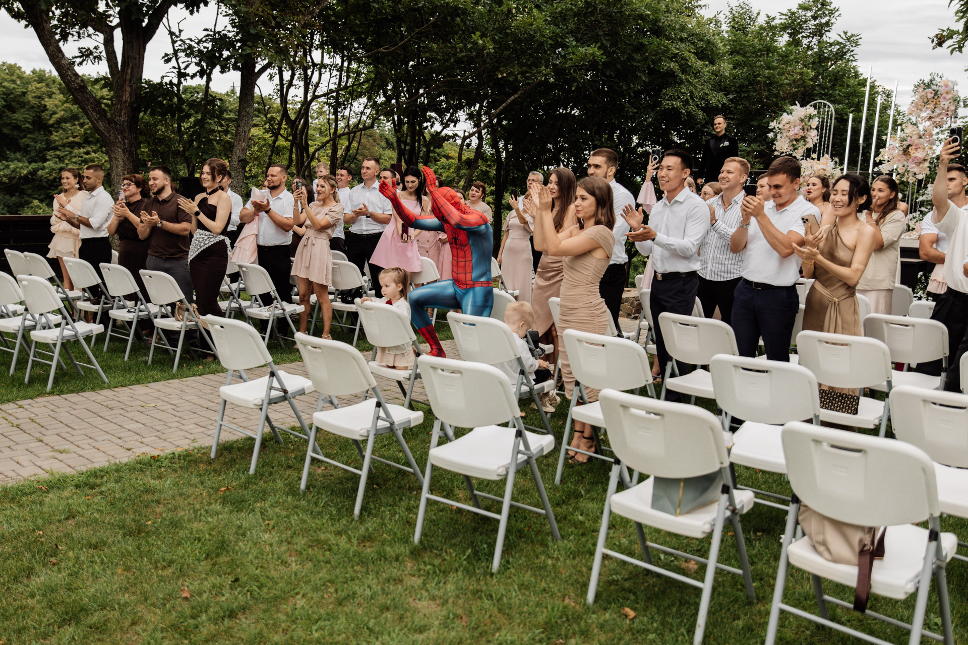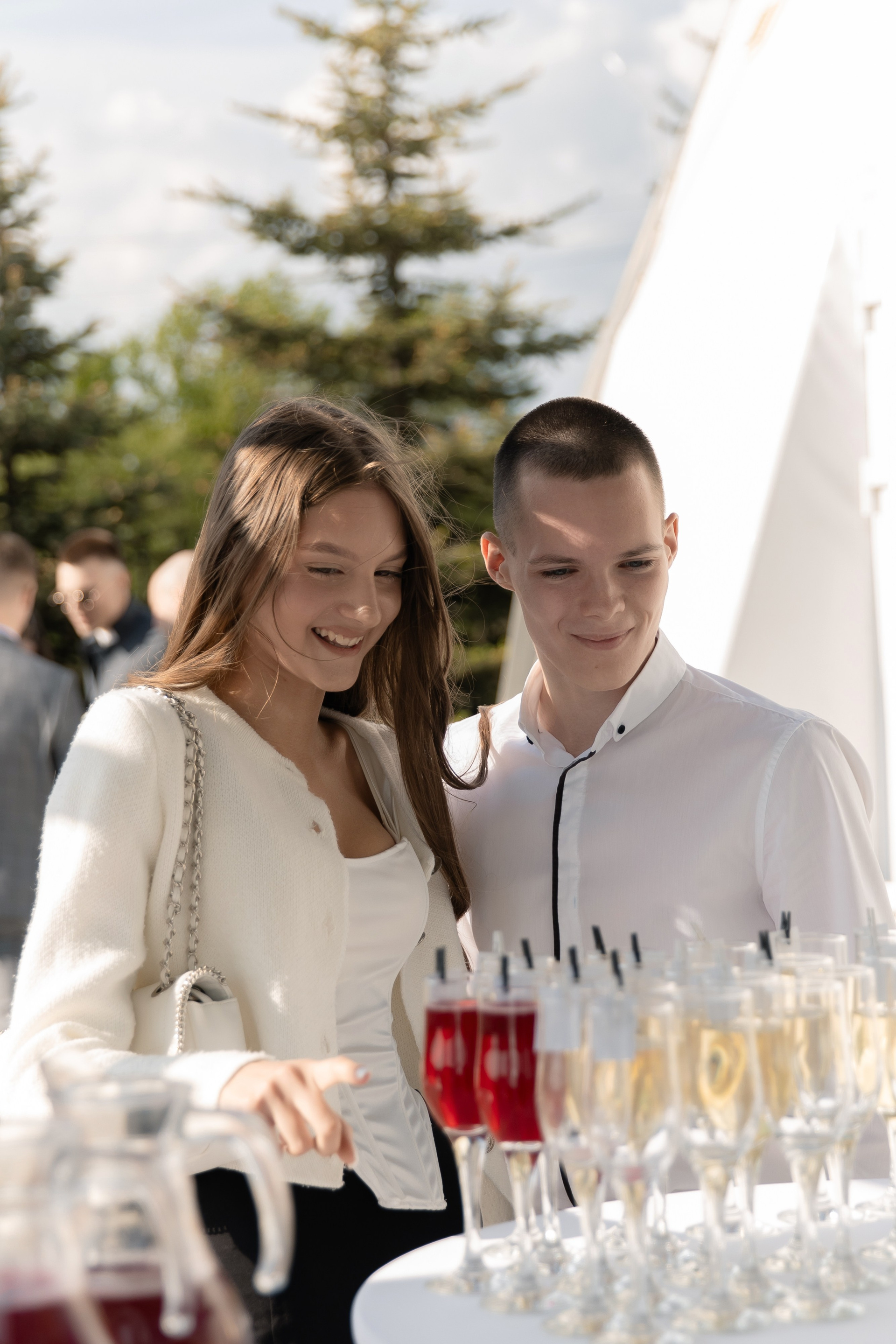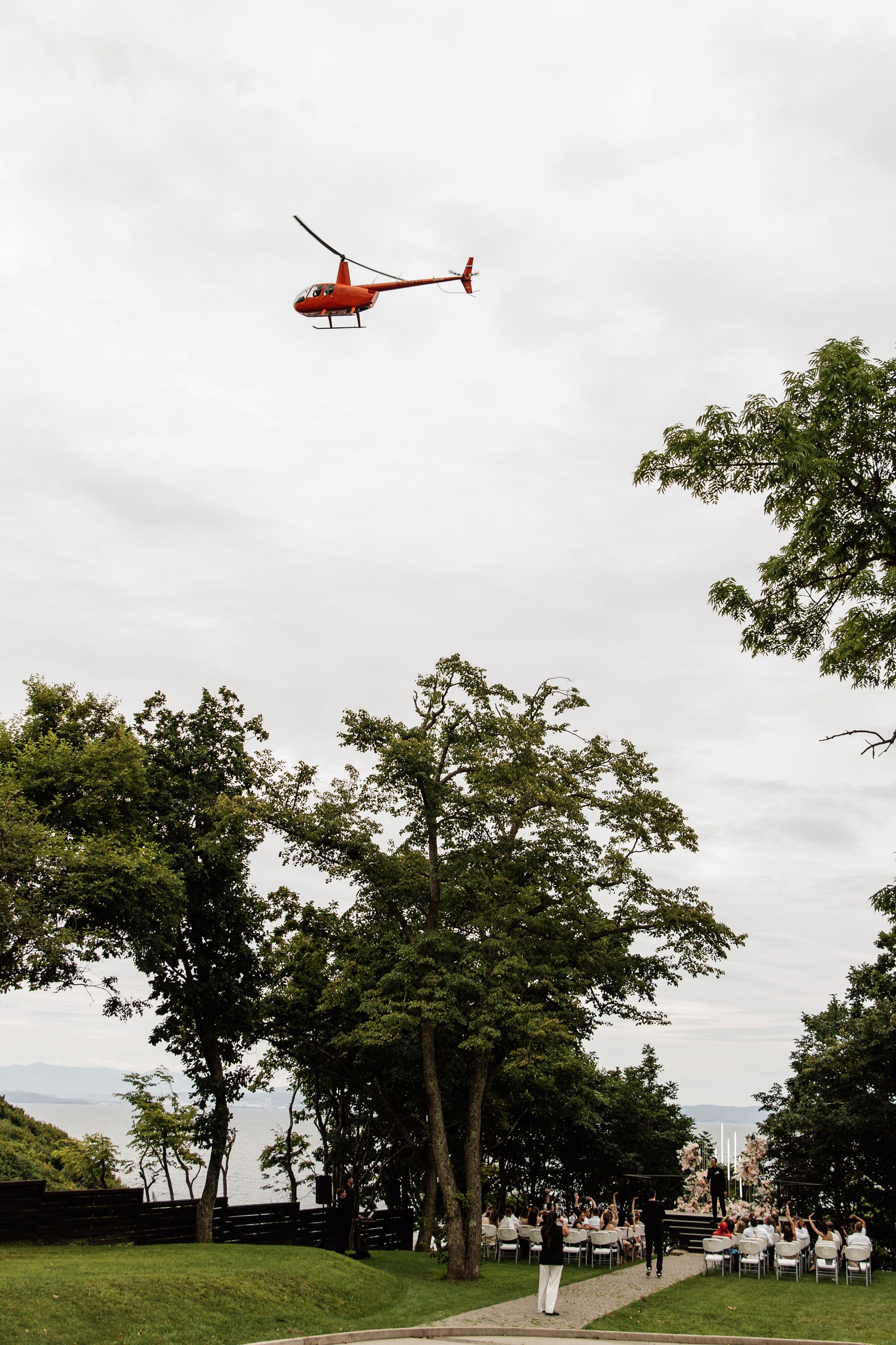 «С небес — прямо в ритм! Welcome-зона с диджеем, танцующие дети и шампанское, которое пенится в такт сердцу. Они только что приземлились на вертолете, а праздник уже в разгаре!