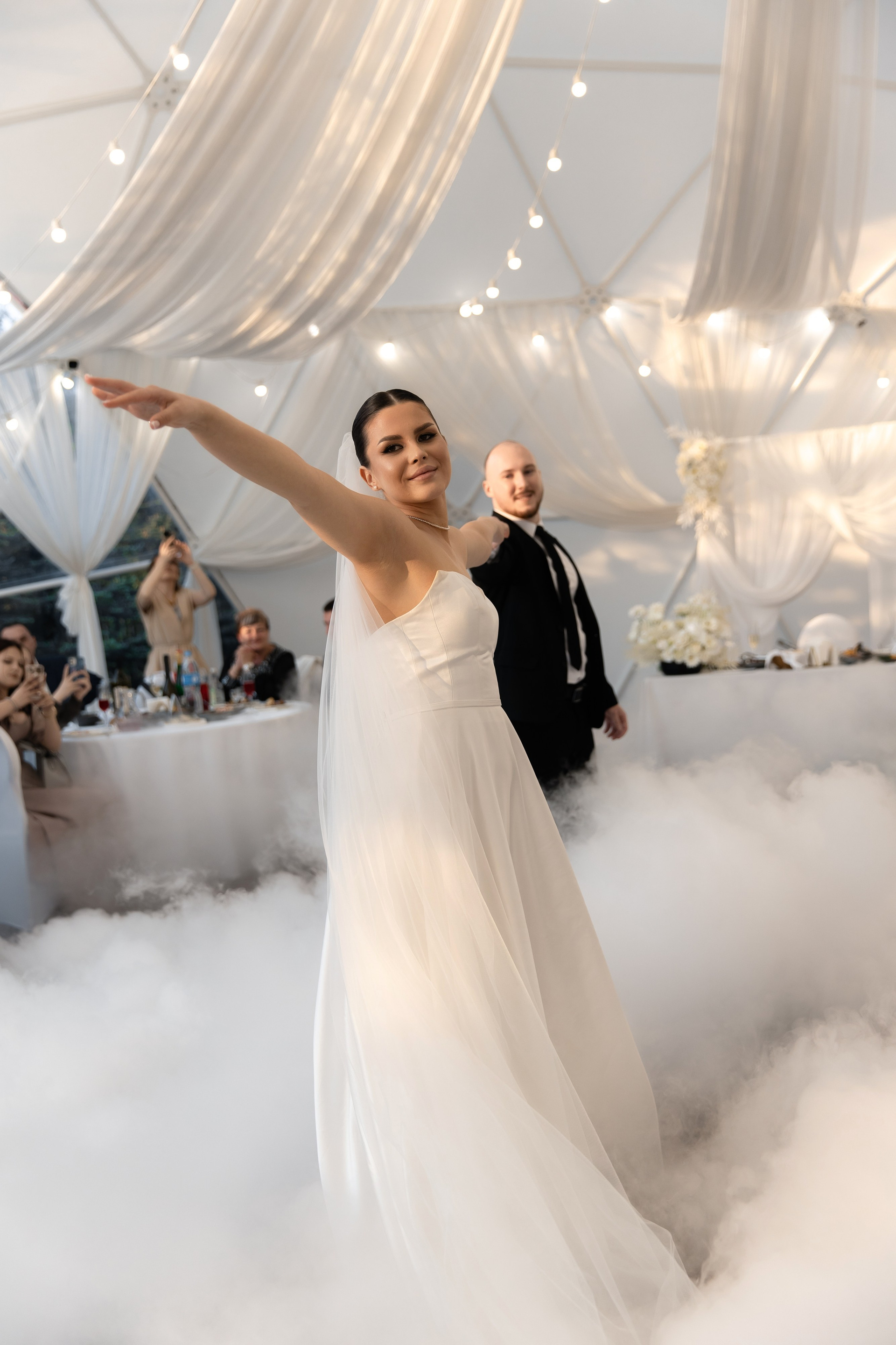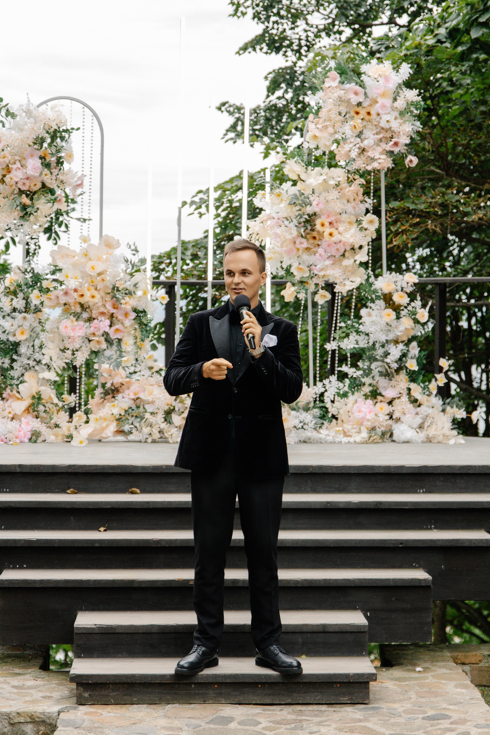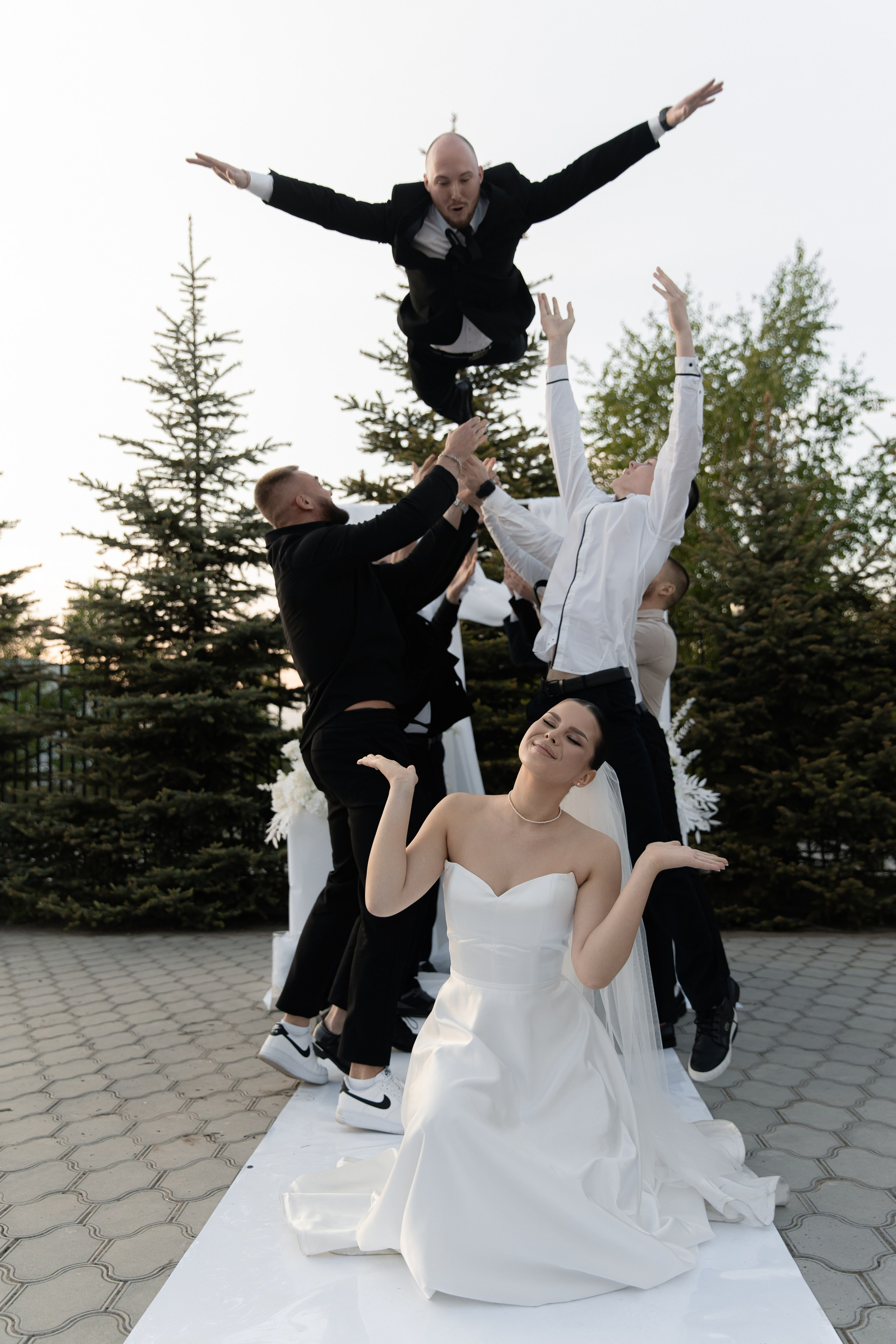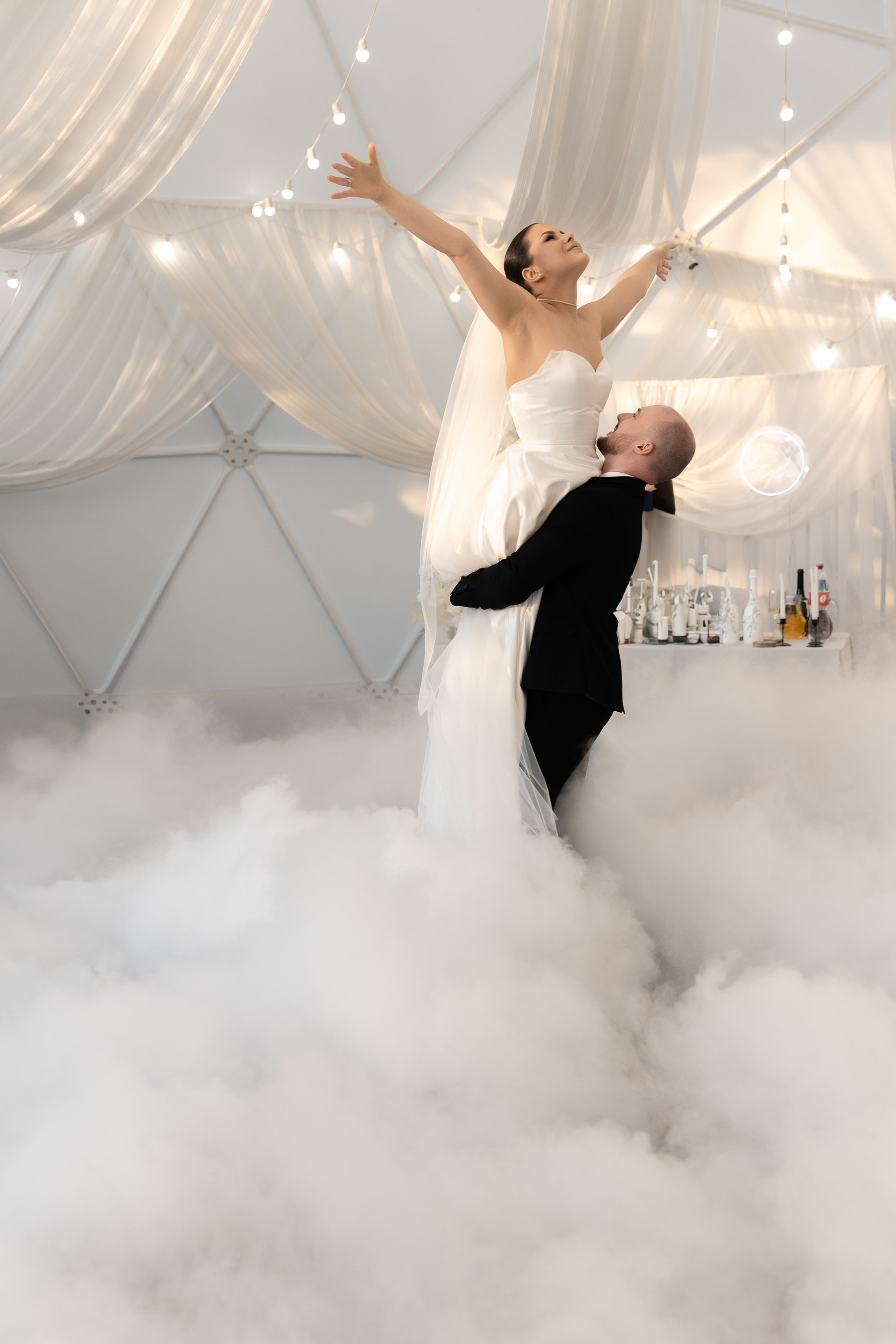 «С небес — прямо в ритм! Welcome-зона с диджеем, танцующие дети и шампанское, которое пенится в такт сердцу. Они только что приземлились на вертолете, а праздник уже в разгаре!